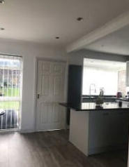 This project was carried out in Sacriston and involved the full removal of an old kitchen, changes to the layout of 3 rooms and the
