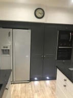 following: Alnwick style doors in light grey and graphite, oven and integrated microwave in a made to